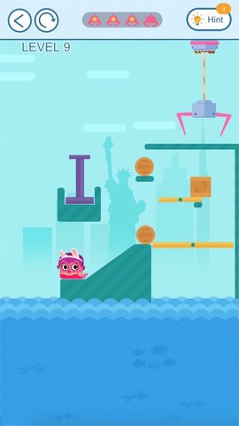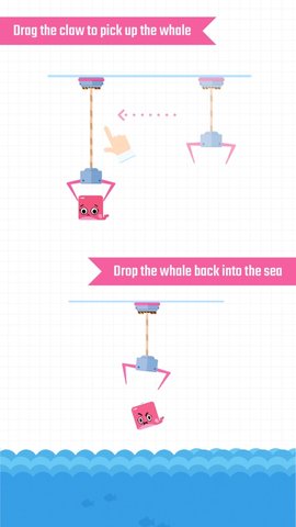 3、玩家只需要控制架子,护送岸上的小鲸鱼下水即可。