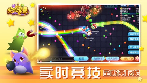 蛇蛇争霸官网版是一款非常好玩的休闲竞技游戏,游戏的玩法非常的简单,旋转操作杆让自己的小蛇动起来,去吃东西来使自己的小蛇变大变长,小心碰到其他蛇。碰到就要从新开始了