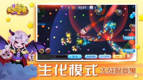 2、超好玩,超刺激,实时在线版贪吃蛇游戏,可与全球名玩家实时对战。在游戏中,您扮演一条小蛇,并且由于迟到不同的美味食物而变得更长。在拉长的过程中,你的头不能碰到任何其他竞争对手,但身体无所谓,它是你的头部就要小心了。您可以使用您的武器撞击其他竞争对手并摧毁他们。