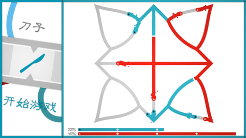 5、在游戏中,您需要使用屏幕上的工具、点、刀或绳子,使您选择的颜色占据图形更大的区域,您可以切割或连接点或线,擦拭或放置点以让你的颜色流动得更快。