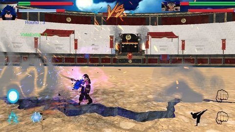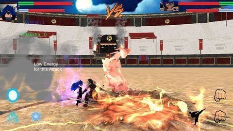 3、你和敌人都有健康栏和特定的健康计数,可以使用操纵杆控制角色的动作方向。