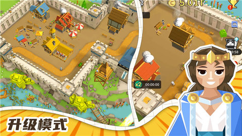 1、玩法非常简单,玩家需要升级城墙,打造强大的王国。