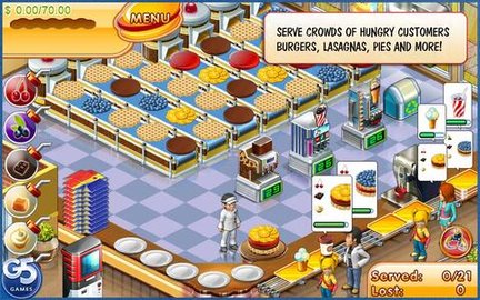 1、简单卡通的游戏画面设计,轻松上手,超级汉堡店3中文版还可以邀请好友一起玩,非常解压;
