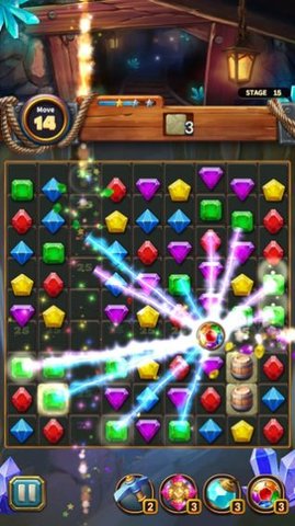 1、锻炼大脑,悠闲地玩游戏,移动并拼凑三个或更多相同颜色的宝石。