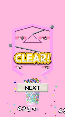 2、拉动数针游戏,拉动针收集更多球,然后让球落入杯中。