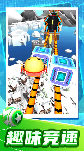 3、选手控制球在清凉的赛道上冲刺,注意音乐的节奏,避开各种障碍物,第一时间冲向终点。