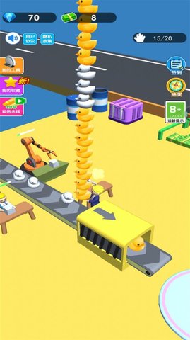 在老板模拟器游戏中,玩家将扮演一个刚刚创业的小老板。一开始他们将通过携带车间生产线生产的玩具来赚取第一桶金。在赚取足够的金币后,他们可以解锁搬运工,打开其他生产线并解锁相应的道具,扩大他们的车间提高效率,并赚取更多金币以解锁不同级别和车间。