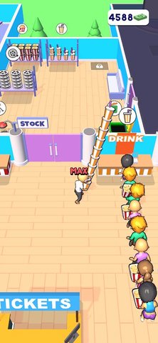 3、不断维护和升级影院,解锁更多区域,这样你就可以赚更多钱。