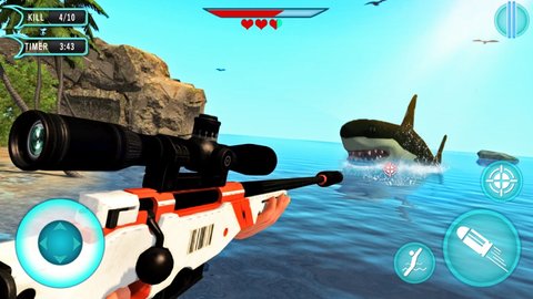 鲨鱼猎手3D是一款第一人称为视角的狙击类射击游戏,游戏中你要杀死鲨鱼在海里,但也要完成各种任务,狩猎只完成了任务的目标可以解锁下次我任务,随着球员们继续完成任务,任务的难度将越来越高,鲨鱼将变得更加强大,玩家需要继续更新设备,使它成为一个更好的方法来把事情做好。感兴趣的小伙伴快来下载体验吧!
