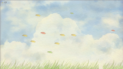 1、这是一款安静清爽的小游戏,你是游戏中的一片树叶,迎风飞翔。