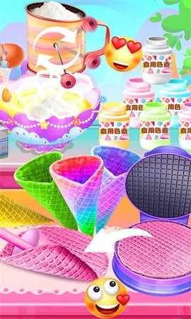 1、你在《独角兽冰淇淋》游戏中看到的图片色彩丰富,更加儿童化。