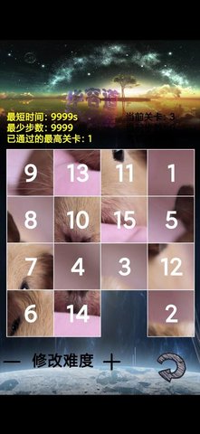 魔法数字华容道游戏是一款全新的华容道游戏,在这款游戏中,游戏玩法与经典的华容道游戏有些不同,这个玩法不是按顺序排列数字1-15,而是重新排列一张照片,使它恢复到原来的形状。