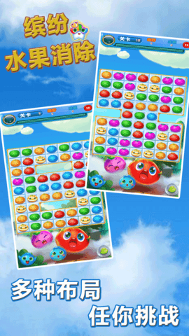 缤纷水果消除是一款有趣的休闲消除游戏。超可爱的水果消除主题,可以轻松添加消除的乐趣,可以带来如此多的乐趣,为广大玩家带来不同级别以上难度更大的挑战,玩家可以轻松加入消除享受奇妙的乐趣,锻炼你的思考和观察能力,以及超级丰富的可以获得奖励,感兴趣的小伙伴快点来下载吧,千万不要错过了!