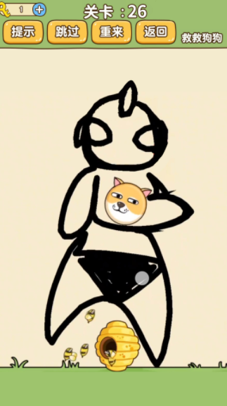 2、用画保护狗的头。只要它没有被蜜蜂叮到,你就成功完成了关卡。