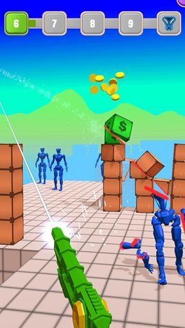 6、关卡界面有不同颜色的小盒子,玩家必须在切割相同颜色的色块后触摸相应的方框。