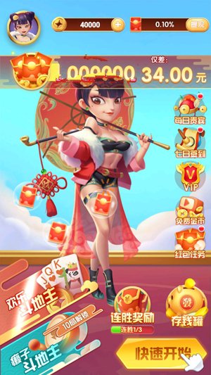 休闲好玩的斗地主游戏,这款斗地主游戏支持游客登录.快速开局!玩家无需实名认证就可以开始对局啦!而且,游戏里准备了超级丰厚的福利礼包,玩斗地主还可以赚钱,直接提现到账!玩家在游戏中可以参与对局,累计100元红包提现到账哦!