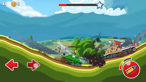 1、不断的战斗,疯狂的坦克竞争,升级坦克,可以自由改装,提高性能。