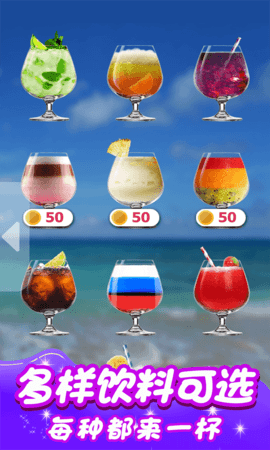 3、鸡尾酒模拟器允许您根据您喜欢的氛围(如咖啡馆、酒吧、海滩和户外场所)将饮料背景切换到不同的场景。