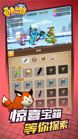 《噜噜历险记》是一款很好的安置游戏,在里面玩家还可以去那里进行各种挑战。你想用自己的角色攻击对手。还有许多设备可以合成,以提高你的力量。玩家也可以直接挂断电话。每次玩家击败对手,都会有奖励,给你一个宝箱的概率就是有很多惊喜。