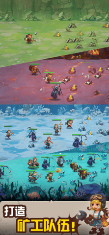 2、自由升级组合,建立自己的专属阵容,壮大全新强大的矿工队伍。