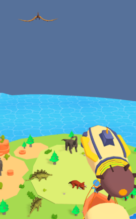 2、小岛上有恐龙,注意保护自己不要被恐龙吃掉了,你需要躲避它们的追捕。