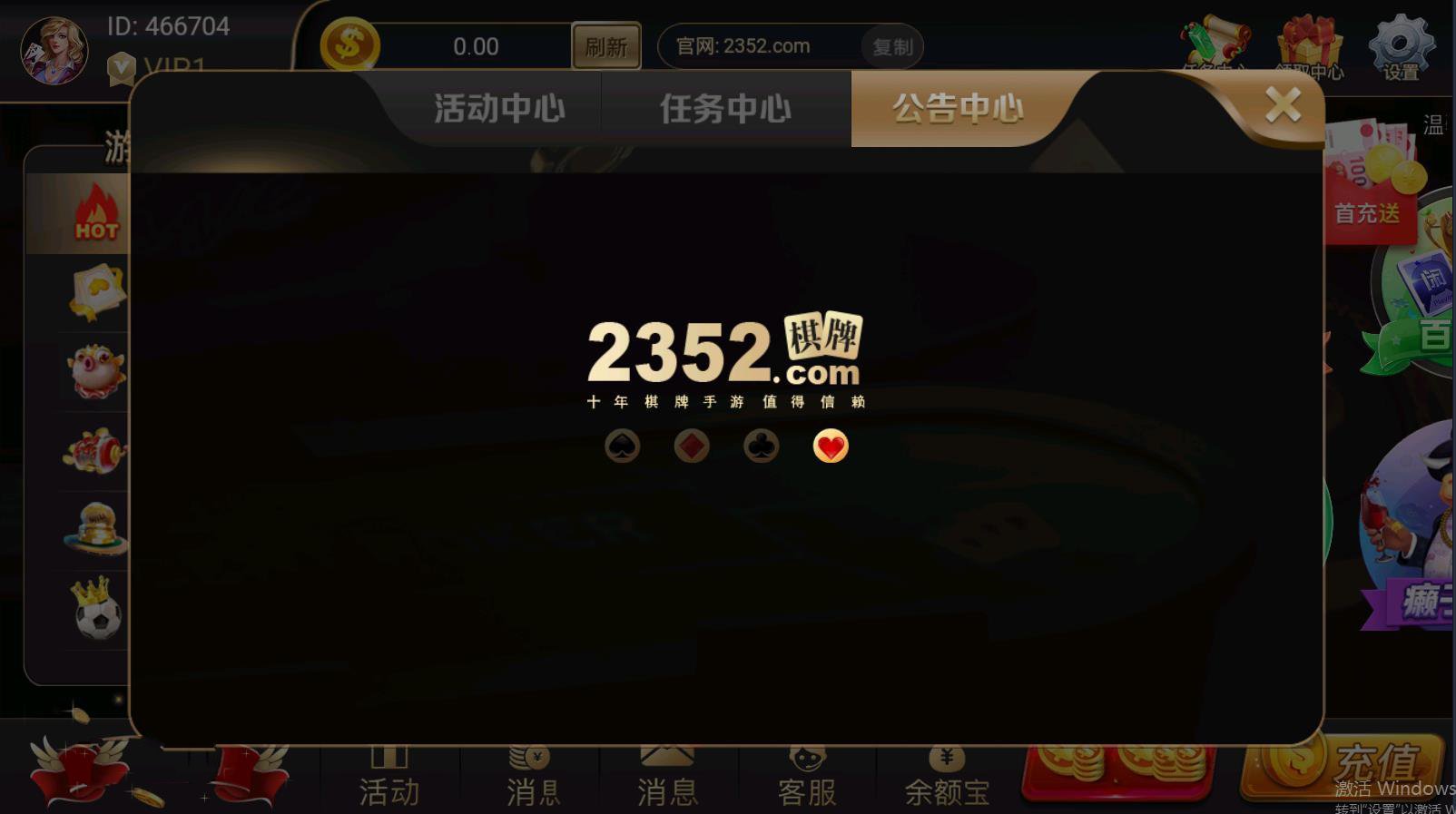 2352棋牌最新版,天天有活动,天天领大奖,来玩便是赚到,福利拿到手软。多种游戏全新晋级上线,新人赠送礼包,让你能够尽享游戏快感。各种精彩竞赛随时上线就能体会,用户每日登陆上线都能在线参加渠道活动。每一次游戏都能够让玩家爱不释手,在游戏中还可以领取每天的救济金哦!