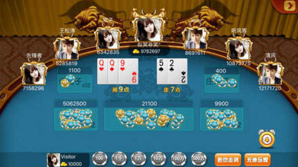 3、玩家在比牌的过程中是无法查看到对方的点数的,只要到比赛最后才能揭晓