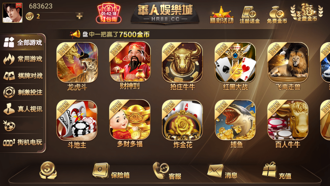 1、经典的棋牌玩法,斗地主、炸金花、牛牛龙虎斗等等,玩法多样,随机选择~