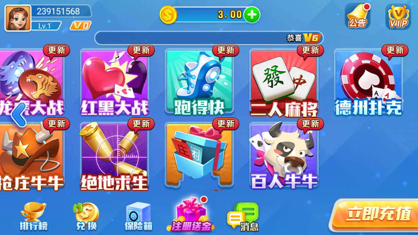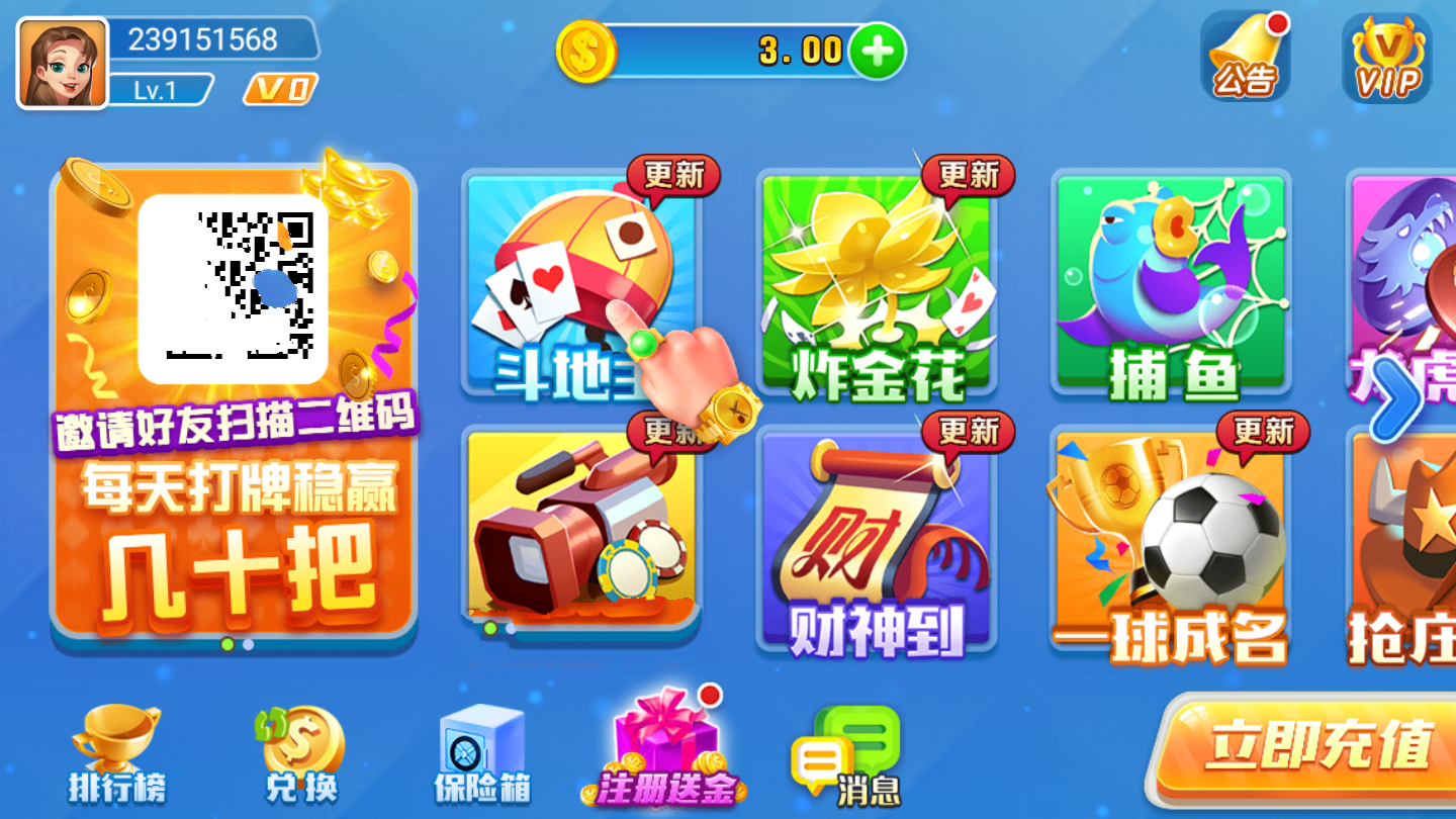 这是一款最近异常火爆的手机棋牌游戏,现在市面上许多热门火爆的游戏都可以在这款游戏中找到,聚集了一大批有实力的强者,在这里寻找你的对手击败他,哈哈,欢乐无极限,感兴趣的朋友快来下载试试吧!