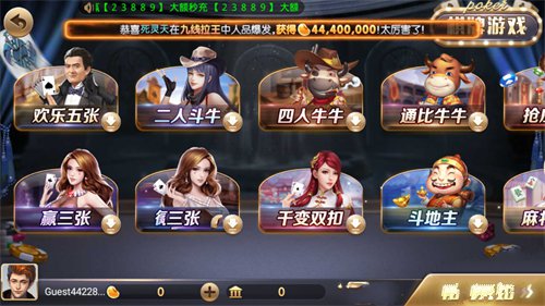 4、游戏界面非常简洁,在游戏里面可以查看各种不同的棋牌玩法模式可以去体验,超多有趣的棋牌竞技玩法在里面进行畅玩;