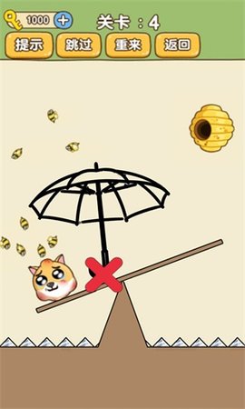 4、游戏画面可爱卡通,你需要不断挑战各种关卡,画线帮助小狗躲避蜜蜂的追逐。