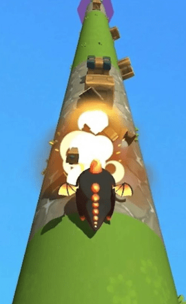1、手指不断滑动手机屏幕,使长柱向不同方向旋转,龙蛋击中障碍物。
