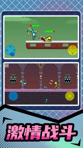 1、是一款全新的在线动作格斗游戏,你将通过灵活的方式操作火柴人来躲避敌人的攻击。