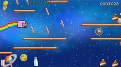 2、在游戏中,玩家需要控制彩虹猫在途中吃掉各种道具。