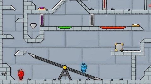 3、两个冰火人不能接触不同颜色的液体;