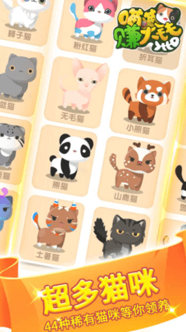1、游戏中有丰富的猫的种类资源,可以供玩家选择自己喜欢的猫。
