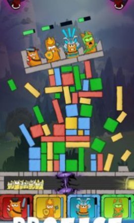 1、用你的智慧移动砖块和保护岩石塔在翻滚塔。匹配相同颜色的方块来支持你的英雄,智胜敌人,并做出战略选择来维持塔的地位。