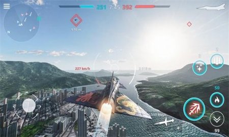 1.空战将继续接受现代战争飞行游戏中的扩展任务,并尽快完成,简单易用的游戏操作。