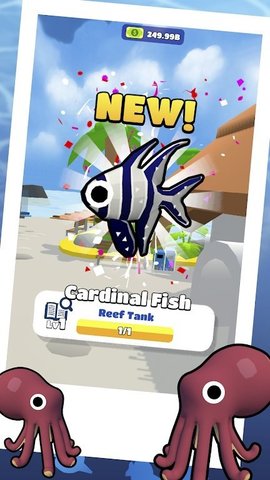 1、欢迎来到闲置海洋公园。来建立一个充满鱼香味的海洋世界,充满水生生物,赚很多钱。