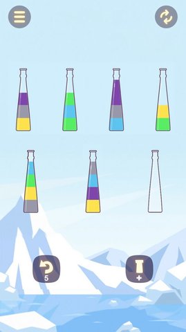 4、你必须使用数量有限的瓶子来分离不同颜色的液体,并填满5个瓶子来完成挑战,享受充满乐趣的介绍模式。