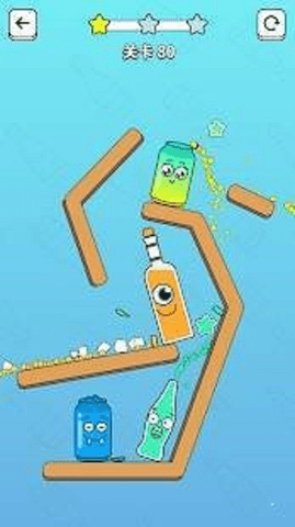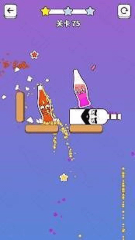 3、玩家需要打开瓶盖,打破所有瓶子,移除所有星星才能成功。