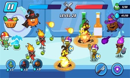 《蔬菜决斗》是一款非常好的战略战斗游戏,这个游戏有非常精彩的策略玩法,玩家希望使用各种蔬菜与敌人战斗,并用自己的策略解决它们,游戏的操作并不困难,你在每个关卡遇到的敌人的力量都会非常强大,玩家需要做好准备,这将很容易解锁更多的蔬菜来帮助你战斗。