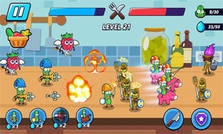 2.游戏的操作非常简单,玩家需要点击屏幕发送蔬菜士兵,这里没有技术困难。