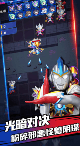 2、所有的怪物和奥特曼英雄都非常可爱和英俊。点击屏幕快速打败怪物。