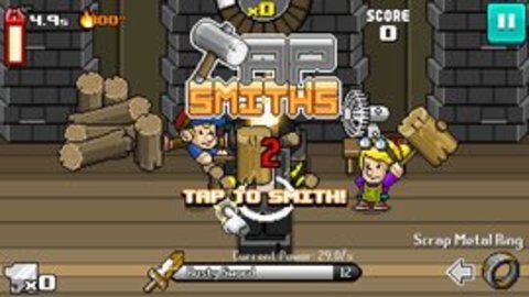 1、是一款经典的像素风格的趣味休闲手游,游戏中玩家作为木匠需要做各种武器,在疯狂的史密斯装备中,点击一定次数就可以完成。