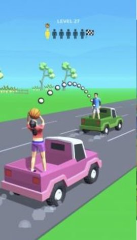 2、在游戏中,玩家可以利用汽车上的玩家将篮球扔进篮筐。