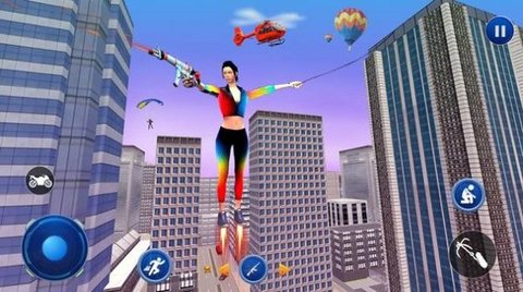 2.《绳索蜘蛛女英雄》游戏守卫城市,成为游戏中的超级英雄,并控制角色摧毁敌人。
