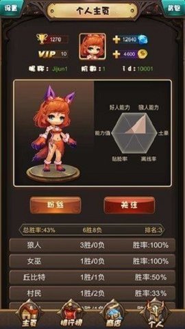 3.主要包括6人、9人、12人三种模式。有十多种职业可供选择,还有一些特殊身份。