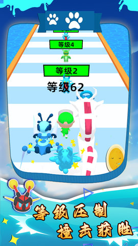 1、是一款跑酷级别的游戏,命令小怪一起快乐冲刺,前方会出现不同级别的小怪,迅速吞噬进化。