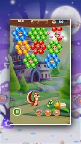 2.《松鼠泡泡射手》游戏的操作非常简单,这是一个经典的淘汰赛,或者是一个有趣的泡沫破裂主题。